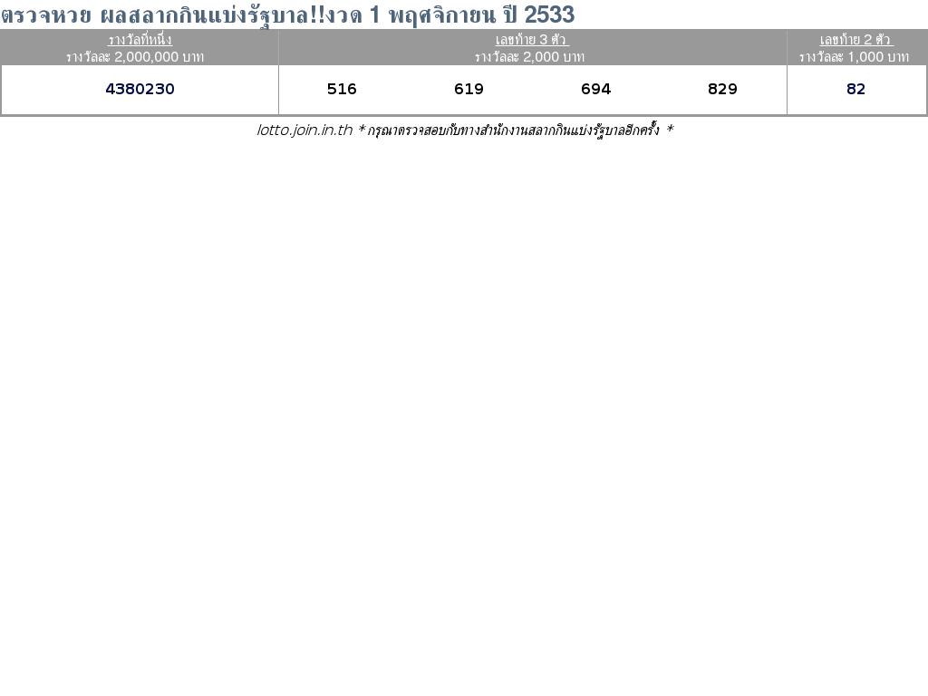 ตรวจผลสลาก, ตรวจผลสลากกินแบ่ง, ตรวจผลสลากกินแบ่งรัฐบาล, ตรวจรางวัลสลากกินแบ่งรัฐบาล, ตรวจหวยออนไลน์, สลากกินแบ่งรัฐบาล 1 พฤศจิกายน 2533 สลากกินแบ่งรัฐบาลปี 2533, เช็คหวย ตรวจหวย 1-11-33 ตรวจผลสลากกินแบ่งรัฐบาล 1/11/33 หวยออกอะไร มาลุ้นกันได้เลยที่นี่ lotto.join.in.th