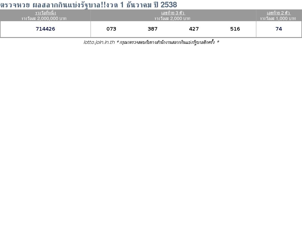 ตรวจหวย ตรวจผลสลากกินแบ่งรัฐบาล 1 ธันวาคม 2538 ใบตรวจหวย 1/12/38