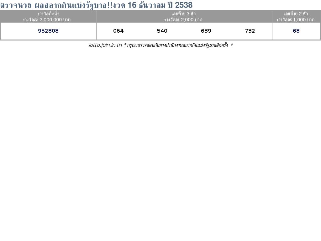ตรวจหวย ตรวจผลสลากกินแบ่งรัฐบาล 16 ธันวาคม 2538 ใบตรวจหวย 16/12/38
