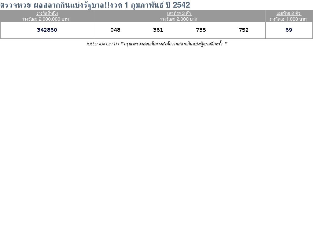ตรวจหวย ผลสลากกินแบ่งรัฐบาล!!งวด 1 กุมภาพันธ์ ปี 2542