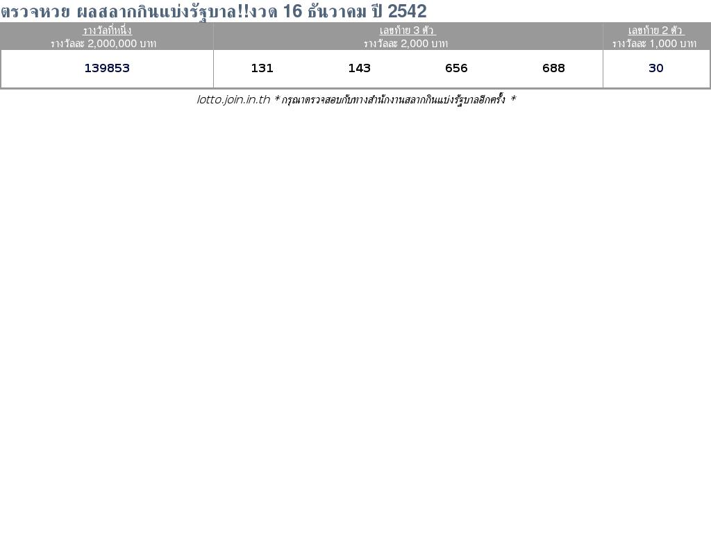 ตรวจหวย ผลสลากกินแบ่งรัฐบาล!!งวด 16 ธันวาคม ปี 2542