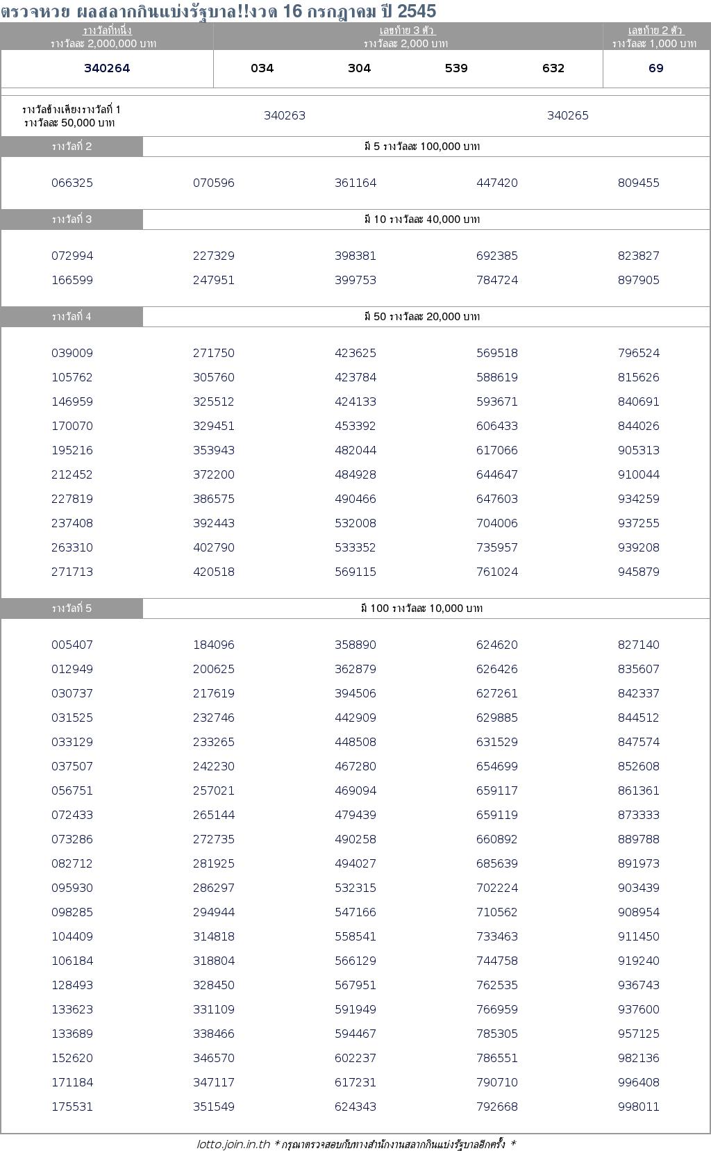 ตรวจหวย ผลสลากกินแบ่งรัฐบาล!!งวด 16 กรกฎาคม ปี 2545