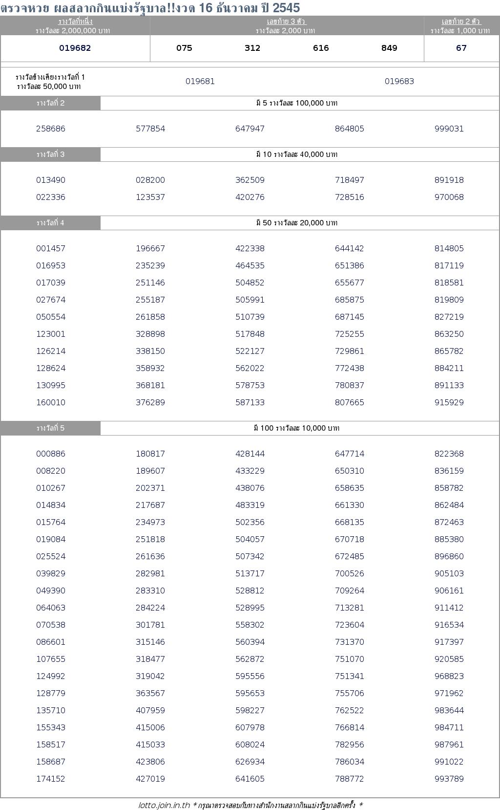 ตรวจหวย ผลสลากกินแบ่งรัฐบาล!!งวด 16 ธันวาคม ปี 2545