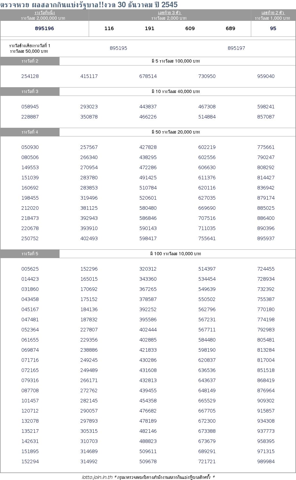 ตรวจหวย ตรวจผลสลากกินแบ่งรัฐบาล 30 ธันวาคม 2545 ใบตรวจหวย 30/12/45