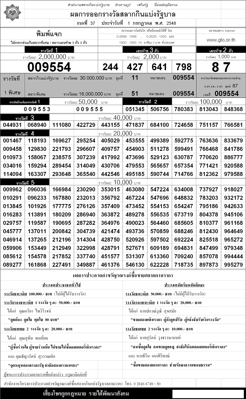 ดาวน์โหลดใบตรวจหวยตรวจหวย สลากกินแบ่งรัฐบาล 1 กรกฎาคม 2548 ตรวจผลสลากกินแบ่งรัฐบาล ผลสลากกินแบ่งรัฐบาล 1/7/48 ตรวจสลาก ตรวจลอตเตอรี่ รวดเร็วทันใจ หวยออก หวยออกอะไร 1 กรกฎาคม 2548 ใบตรวจหวย 1/7/48