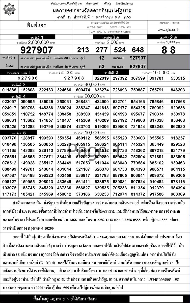 ตรวจหวย ผลสลากกินแบ่งรัฐบาล!!งวด 1 พฤศจิกายน ปี 2550