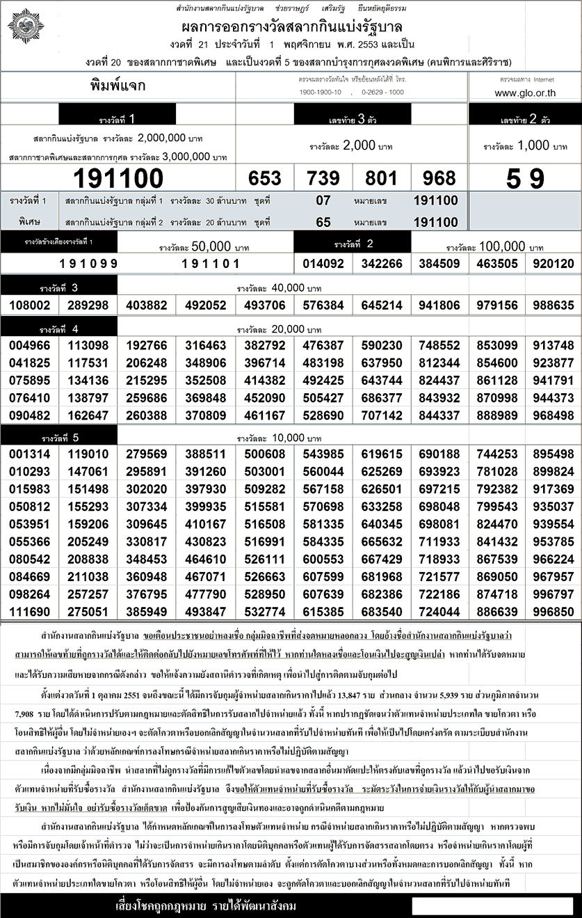 ดาวน์โหลดใบตรวจหวยตรวจหวย สลากกินแบ่งรัฐบาล 1 พฤศจิกายน 2553 ตรวจผลสลากกินแบ่งรัฐบาล ผลสลากกินแบ่งรัฐบาล 1/11/53 ตรวจสลาก ตรวจลอตเตอรี่ รวดเร็วทันใจ หวยออก หวยออกอะไร 1 พฤศจิกายน 2553 ใบตรวจหวย 1/11/53