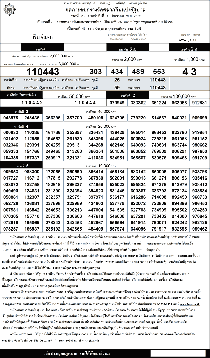 ชื่อเรื่อง:เว็บบริการตรวจผลสลากกินแบ่งรัฐบาลออนไลน์ งวดประจำวันที่ 1/12/55 ตรวจหวย เลขที่ออก 1/12/55