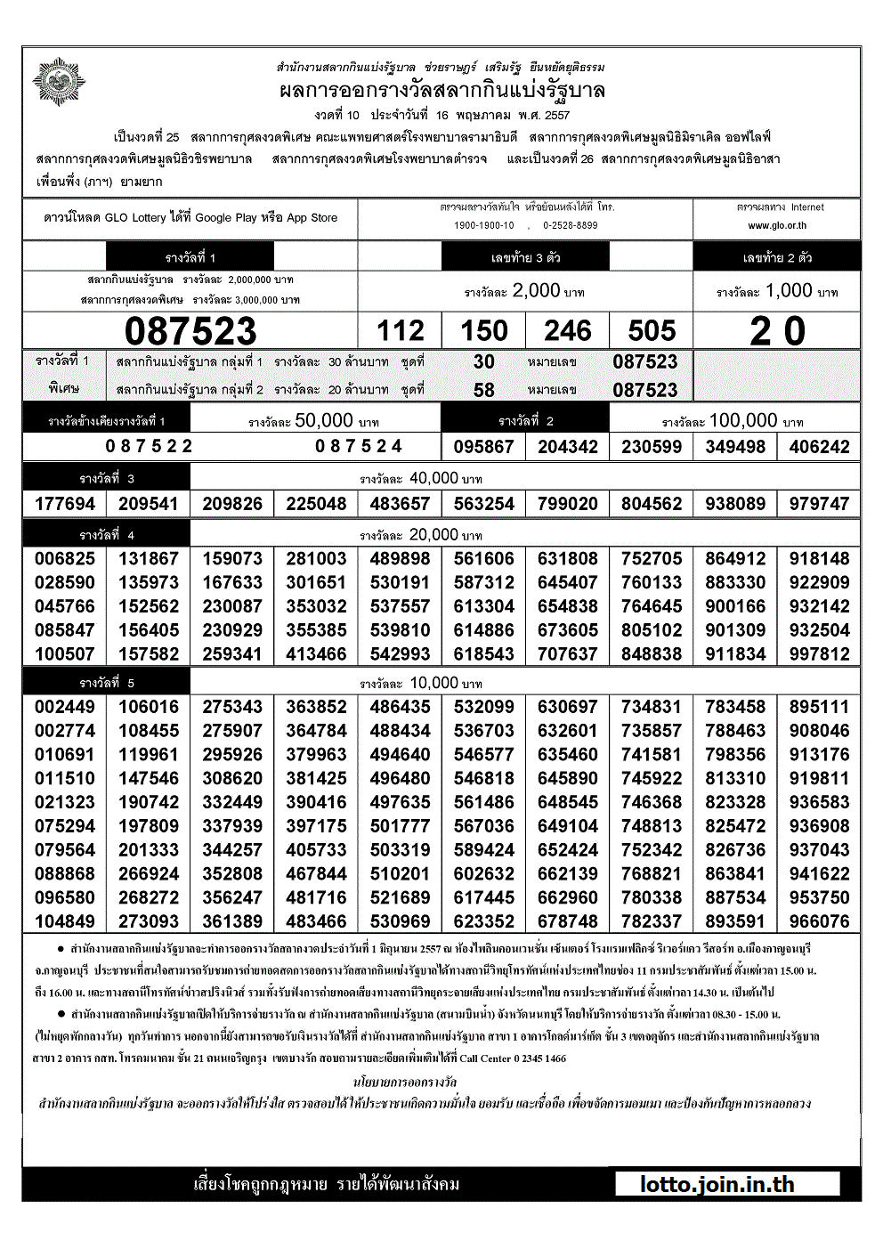 ตรวจผลสลาก 16/05/2557 ตรวจผลสลากกินแบ่ง, ตรวจผลสลากกินแบ่งรัฐบาล, ตรวจรางวัลสลากกินแบ่งรัฐบาล, ตรวจหวยออนไลน์, สลากกินแบ่งรัฐบาล 16 พฤษภาคม 2557 สลากกินแบ่งรัฐบาลปี 2557, เช็คหวย ตรวจหวย 16-5-57 ตรวจผลสลากกินแบ่งรัฐบาล 16/5/57 หวยออกอะไร มาลุ้นกันได้เลยที่นี่ lotto.join.in.th