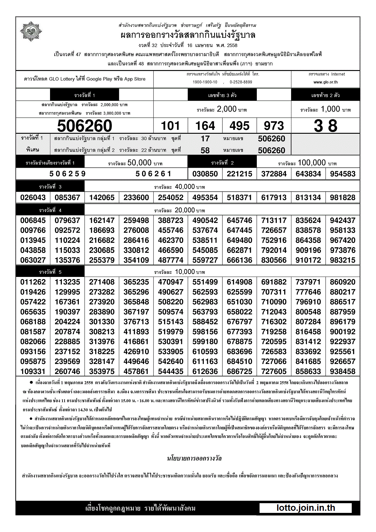ชื่อเรื่อง:เว็บบริการตรวจผลสลากกินแบ่งรัฐบาลออนไลน์ งวดประจำวันที่ 16/4/58 ตรวจหวย เลขที่ออก 16/04/58