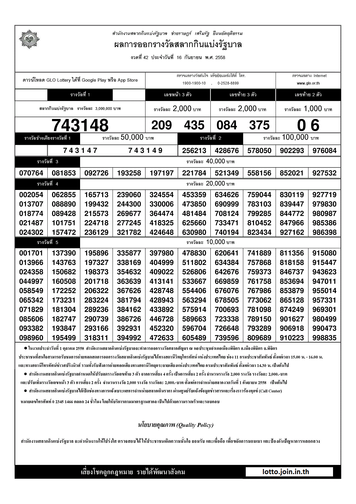 ชื่อเรื่อง:เว็บบริการตรวจผลสลากกินแบ่งรัฐบาลออนไลน์ งวดประจำวันที่ 16/9/58 ตรวจหวย เลขที่ออก 16/09/58