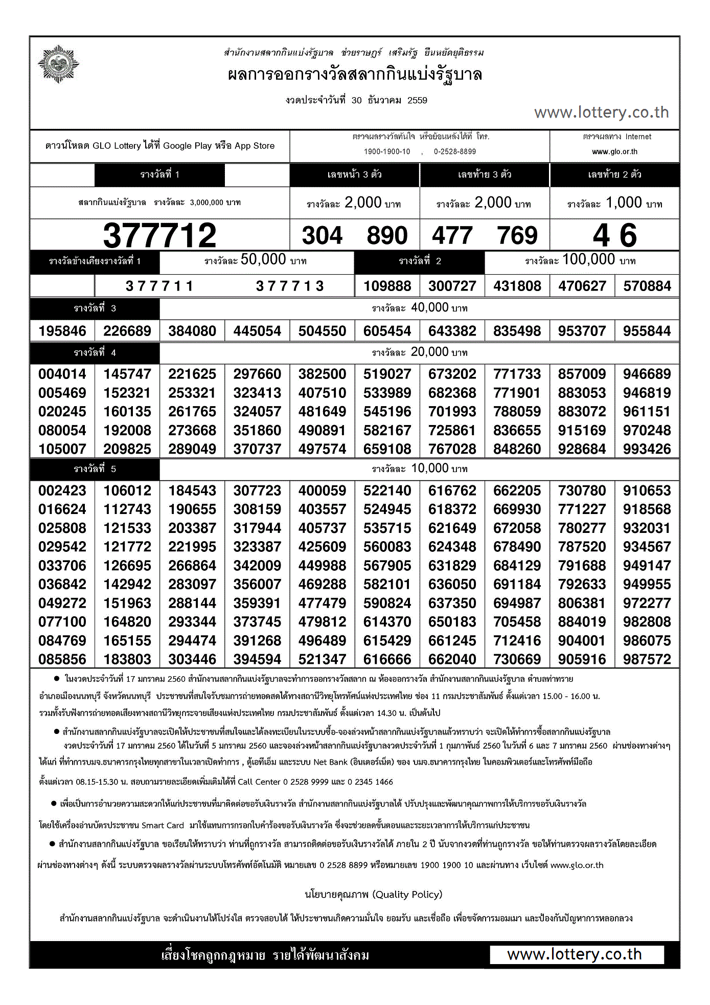 ชื่อเรื่อง:เว็บบริการตรวจผลสลากกินแบ่งรัฐบาลออนไลน์ งวดประจำวันที่ 30/12/59 ตรวจหวย เลขที่ออก 30/12/59