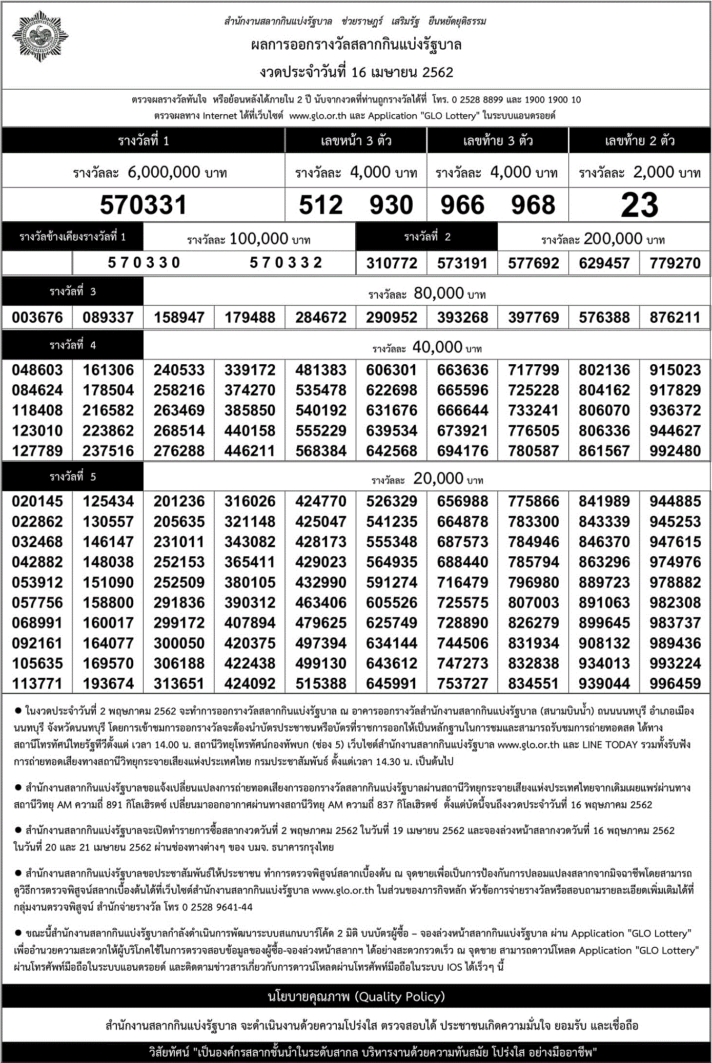 ชื่อเรื่อง:เว็บบริการตรวจผลสลากกินแบ่งรัฐบาลออนไลน์ งวดประจำวันที่ 16/4/62 ตรวจหวย เลขที่ออก 16/04/62