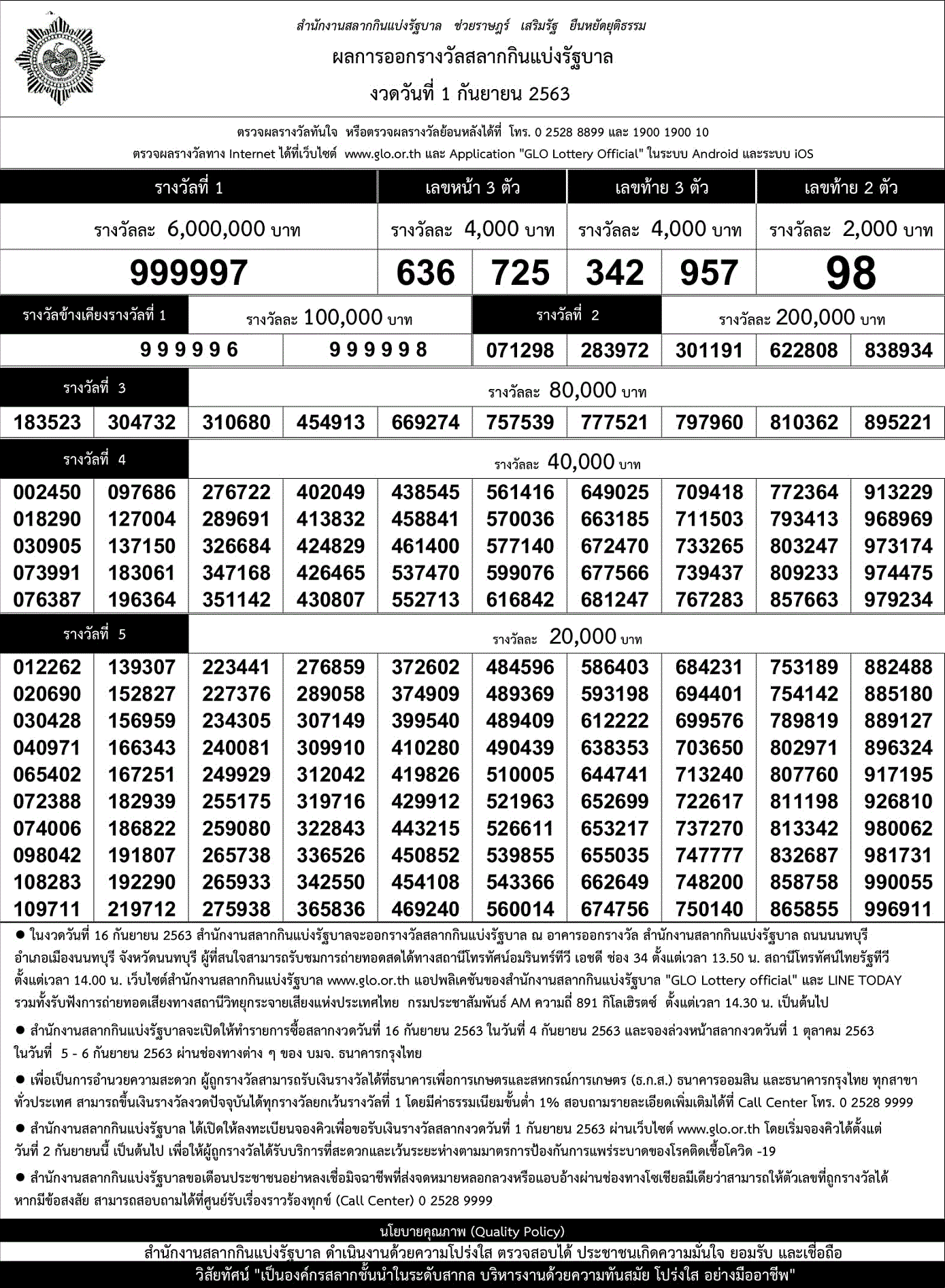 ดาวน์โหลดใบตรวจหวยตรวจหวย สลากกินแบ่งรัฐบาล 1 กันยายน 2563 ตรวจผลสลากกินแบ่งรัฐบาล 1-09-63 ผลสลากกินแบ่งรัฐบาล 1/9/63 ตรวจสลาก ตรวจลอตเตอรี่ รวดเร็วทันใจ หวยออก หวยออกอะไร 1 กันยายน 2563 ใบตรวจหวย 1/9/63