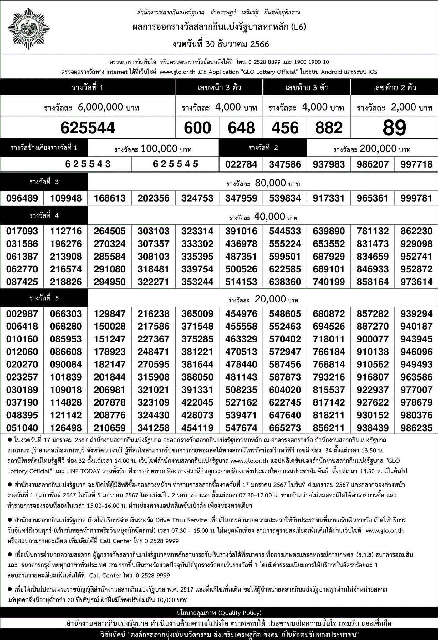 ชื่อเรื่อง:เว็บบริการตรวจผลสลากกินแบ่งรัฐบาลออนไลน์ งวดประจำวันที่ 30/12/66 ตรวจหวย เลขที่ออก 30/12/66