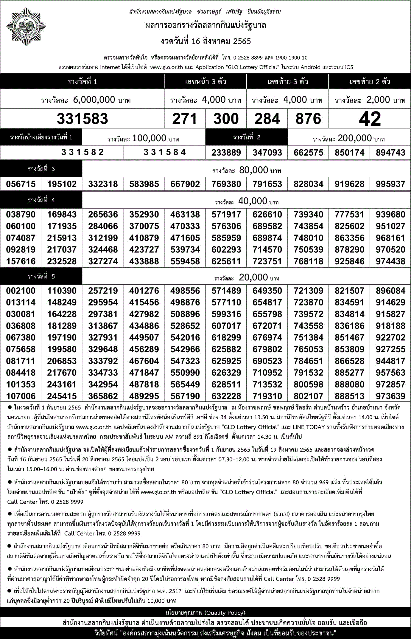 ชื่อเรื่อง:เว็บบริการตรวจผลสลากกินแบ่งรัฐบาลออนไลน์ งวดประจำวันที่ 16/8/65 ตรวจหวย เลขที่ออก 16/08/65