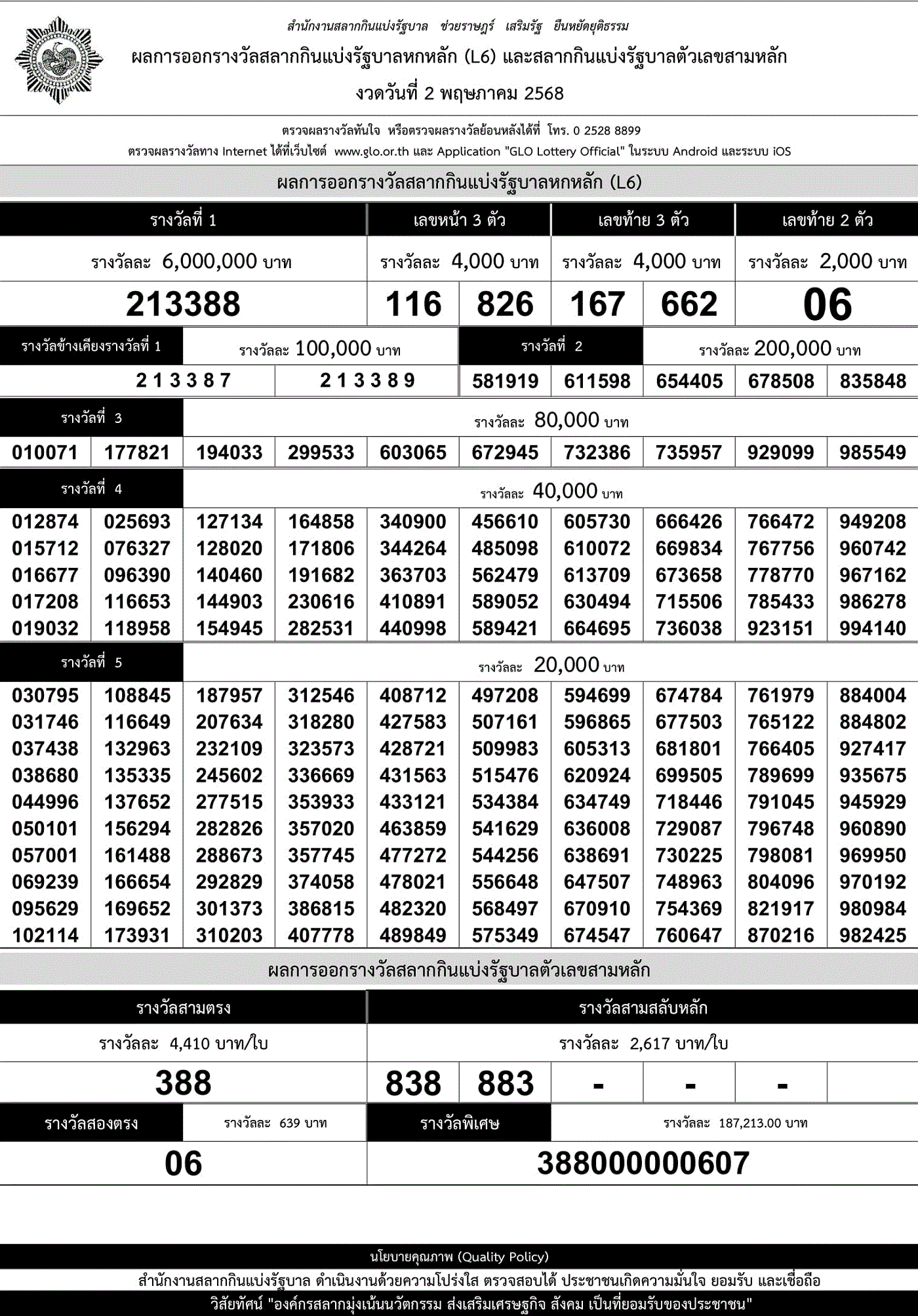 ==ผลสลากกินแบ่งรัฐบาล 2 พฤษภาคม 2568==