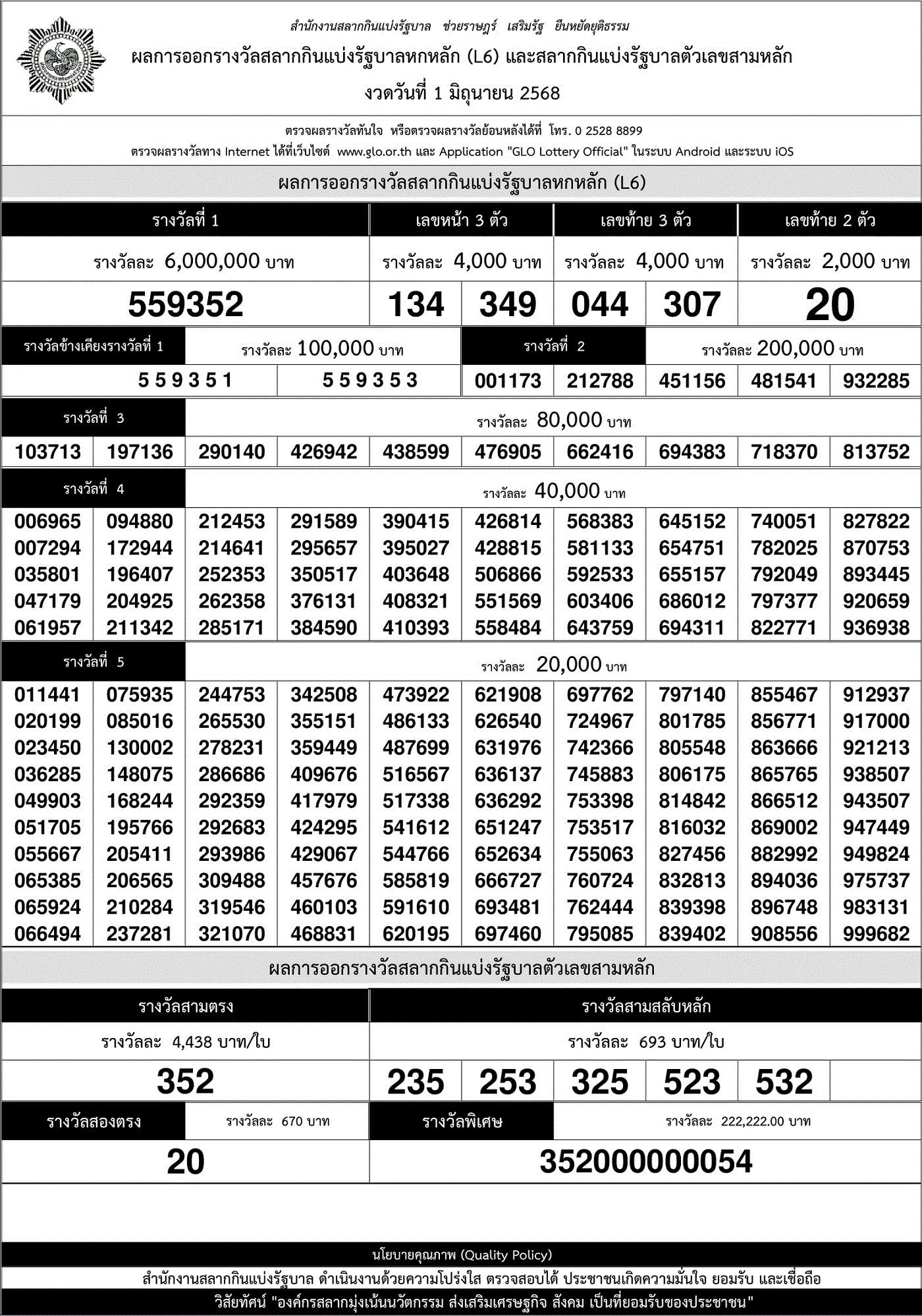 ชื่อเรื่อง:เว็บบริการตรวจผลสลากกินแบ่งรัฐบาลออนไลน์ งวดประจำวันที่ 1/6/68 ตรวจหวย เลขที่ออก 1/06/68