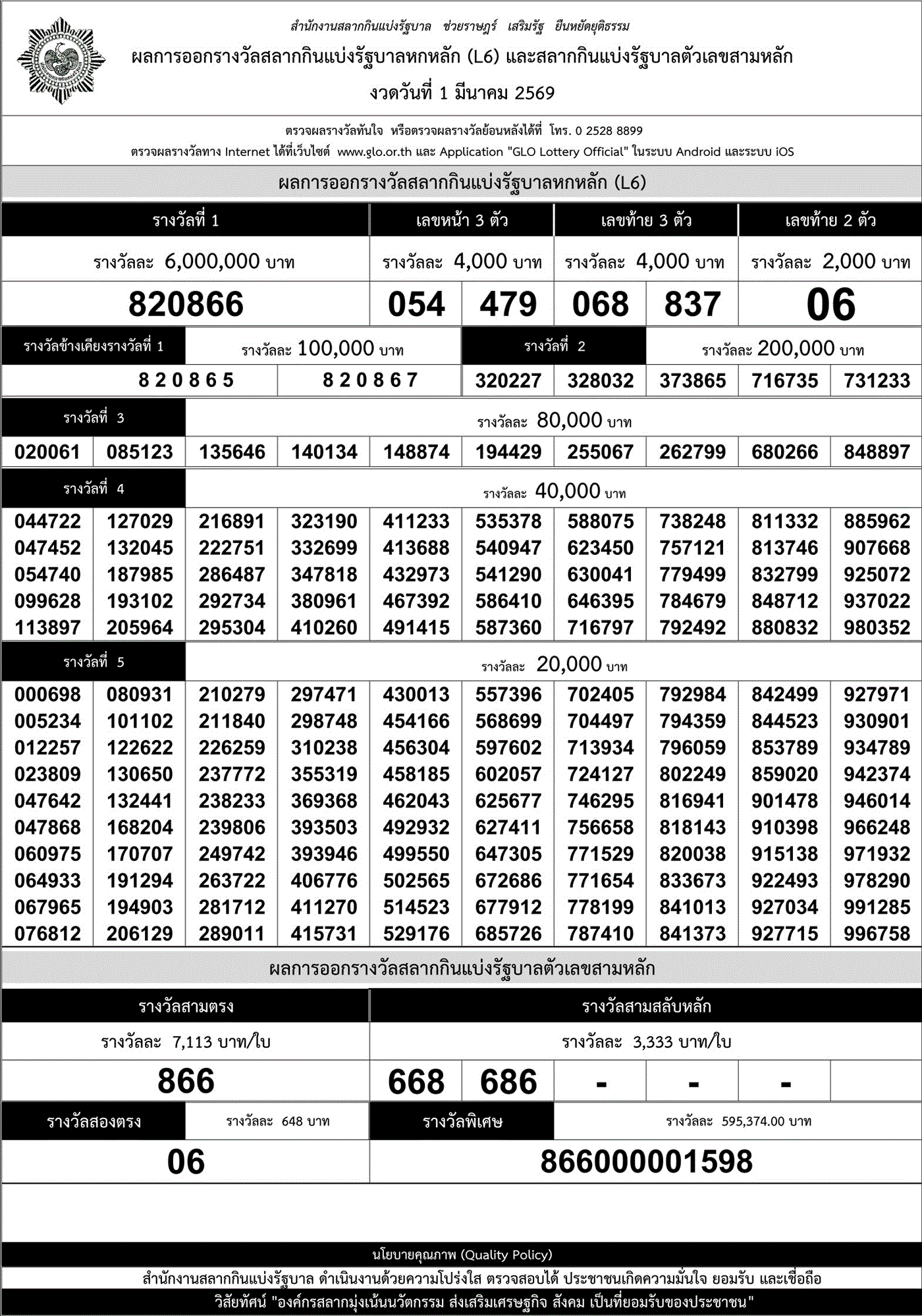 ชื่อเรื่อง:เว็บบริการตรวจผลสลากกินแบ่งรัฐบาลออนไลน์ งวดประจำวันที่ 1/3/69 ตรวจหวย เลขที่ออก 1/03/69